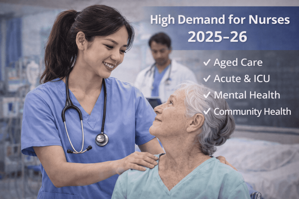 Nursing remains one of the most in-demand occupations in Australia. The government has confirmed skill shortages across: